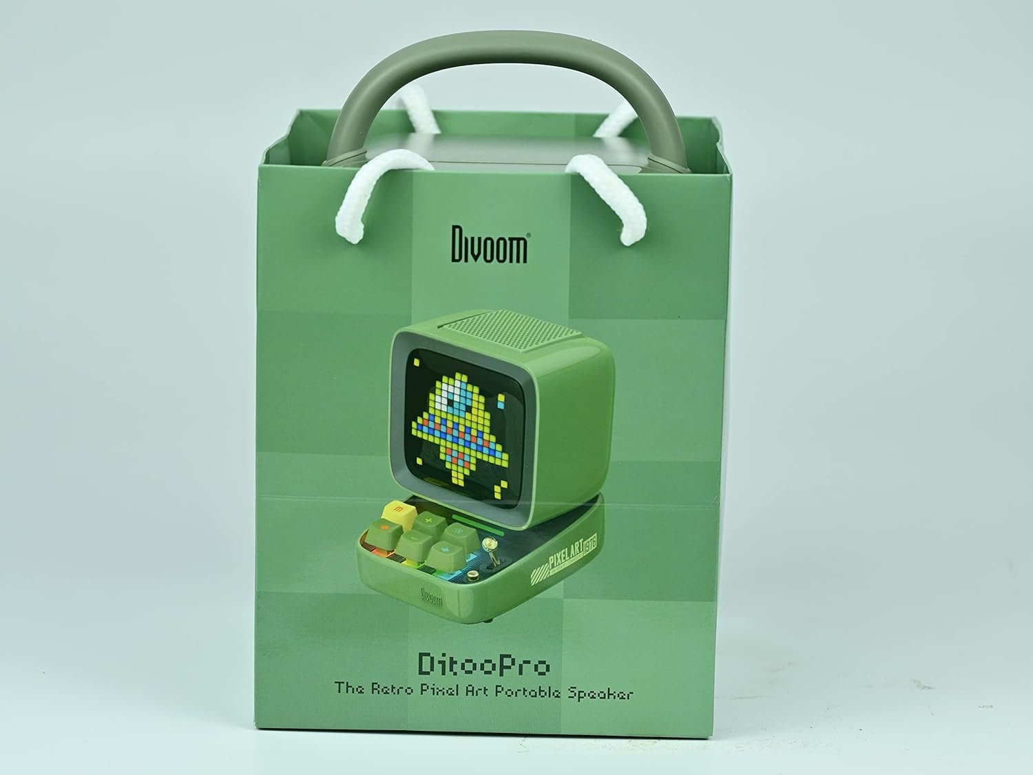 Altavoz LED Bluetooth programable Divoom Ditoo con diseño de píxel, reloj y emojis, ideal para decorar bodas y fiestas en casa, con control inalámbrico por app (verde)