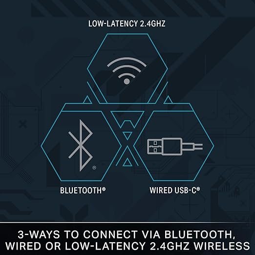 - 3 opciones de conexión: conexión confiable a través de conexión inalámbrica de 2,4 GHz de baja latencia, Bluetooth o USB con cable para mayor flexibilidad en varios dispositivos de juego
